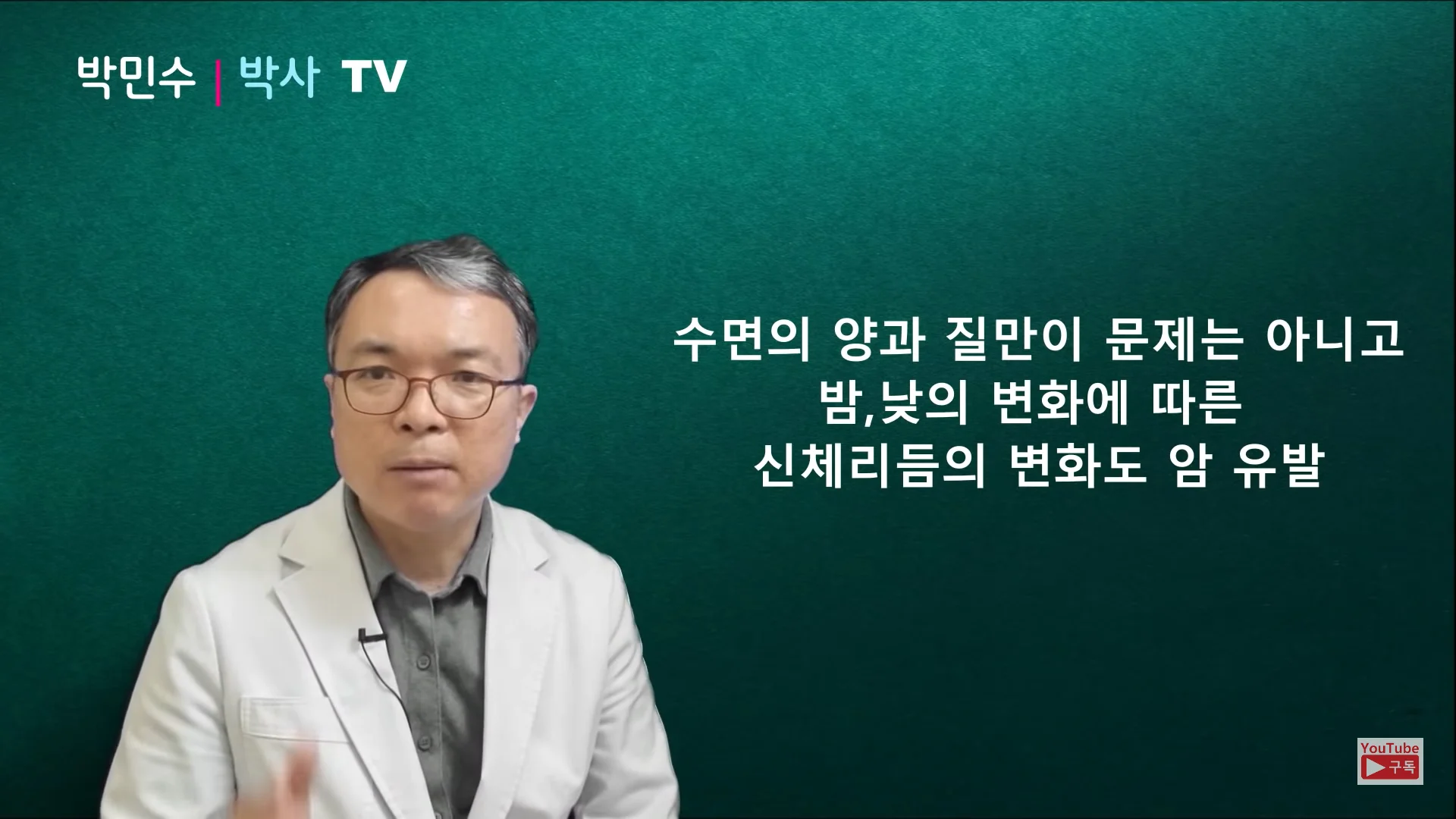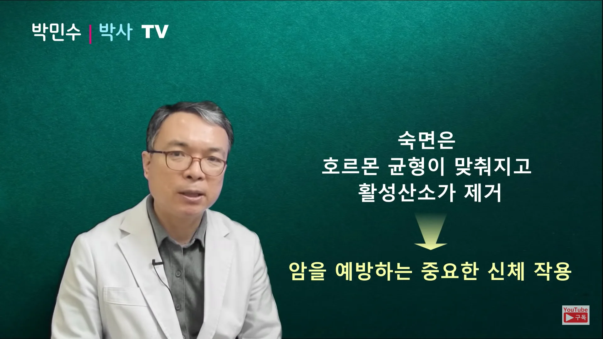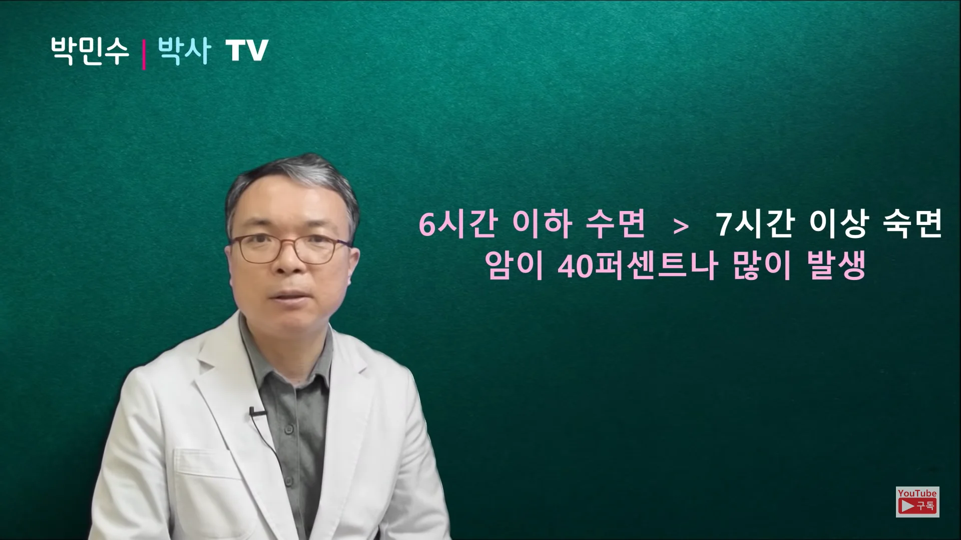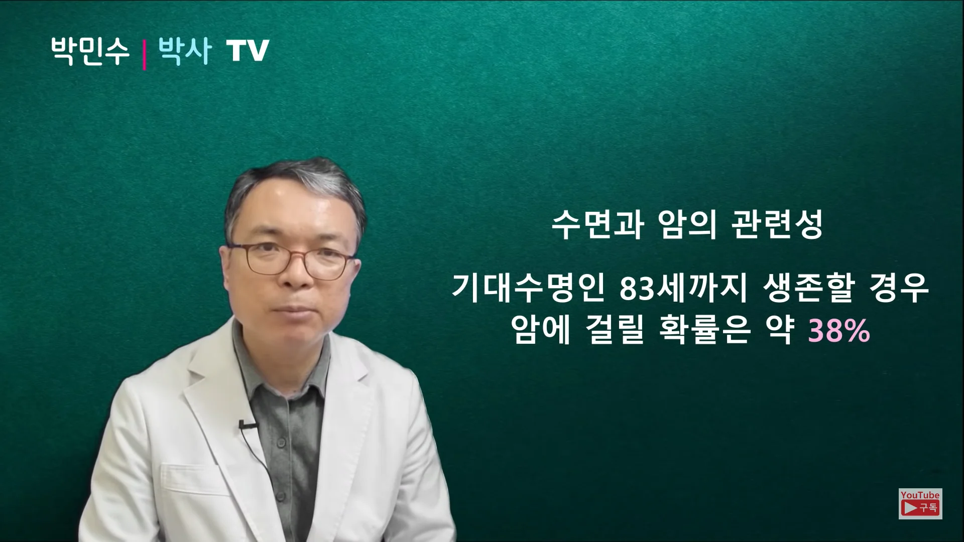 오늘은 서울대학교 의학 박민수 박사와 함께 수면과 암의 관련성에 관해 살펴보고 암을 예방하고 건강하게 살 수 있는 숙면의 조건을 알아보도록 할게요!