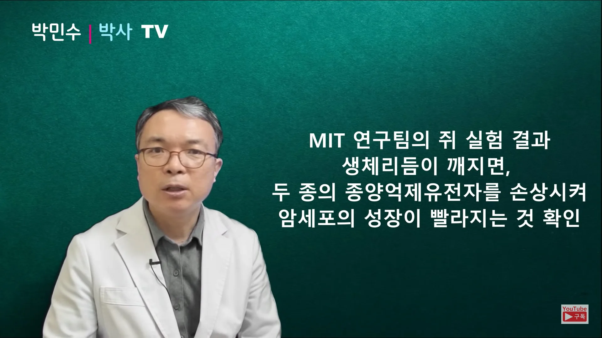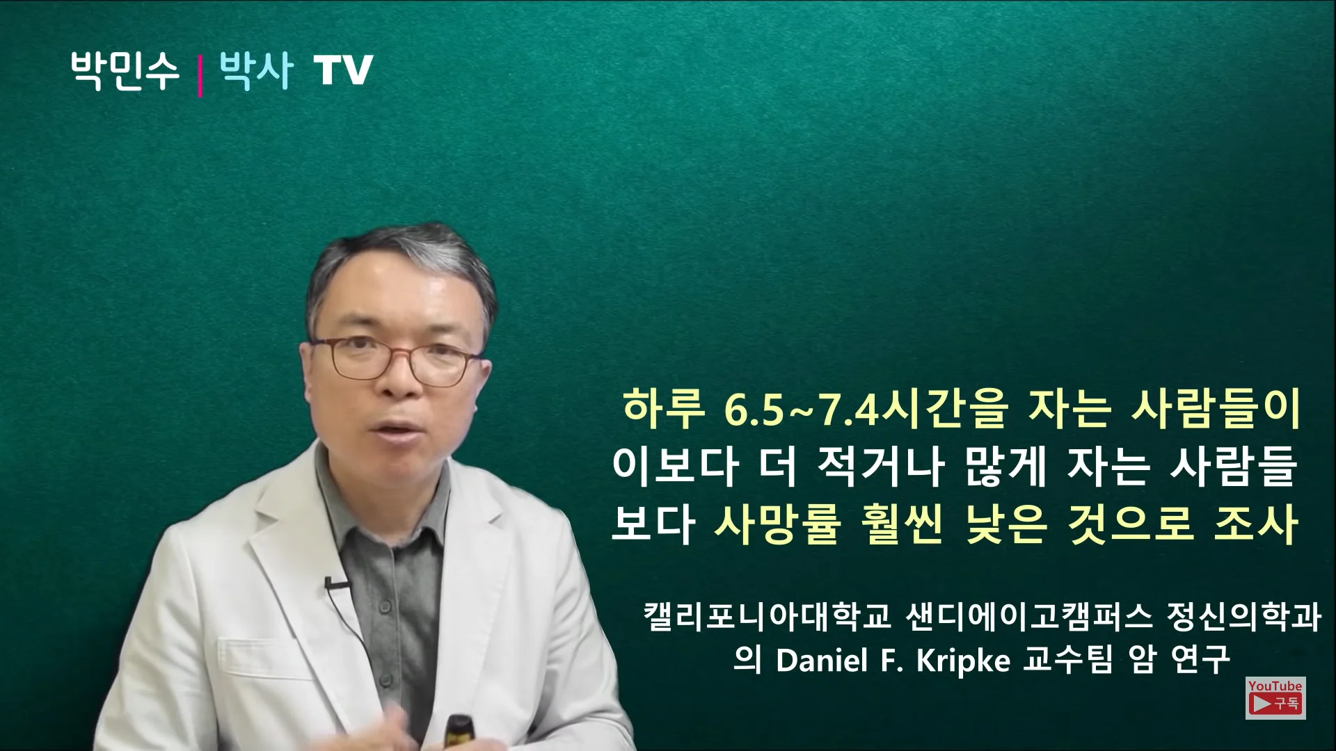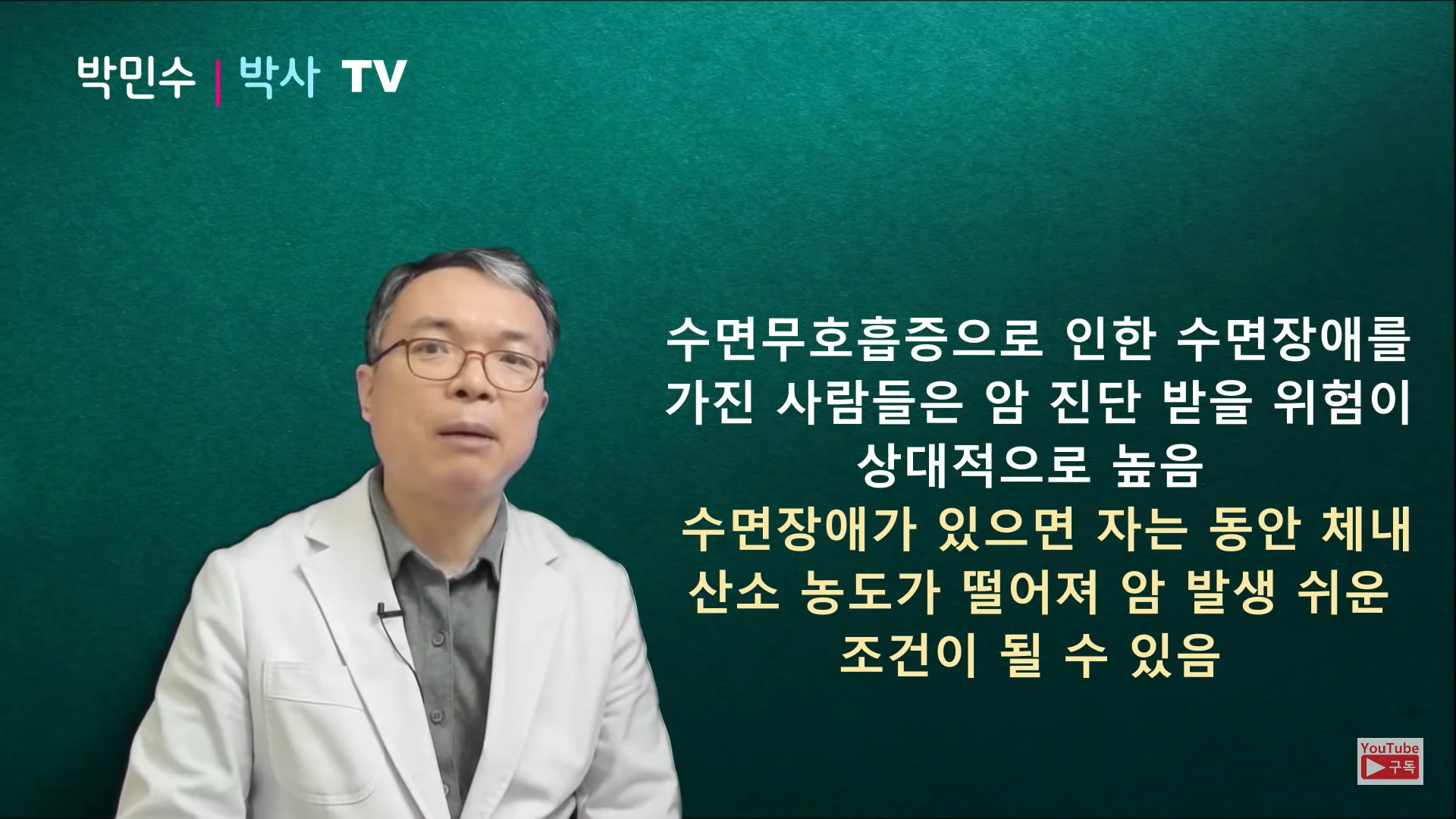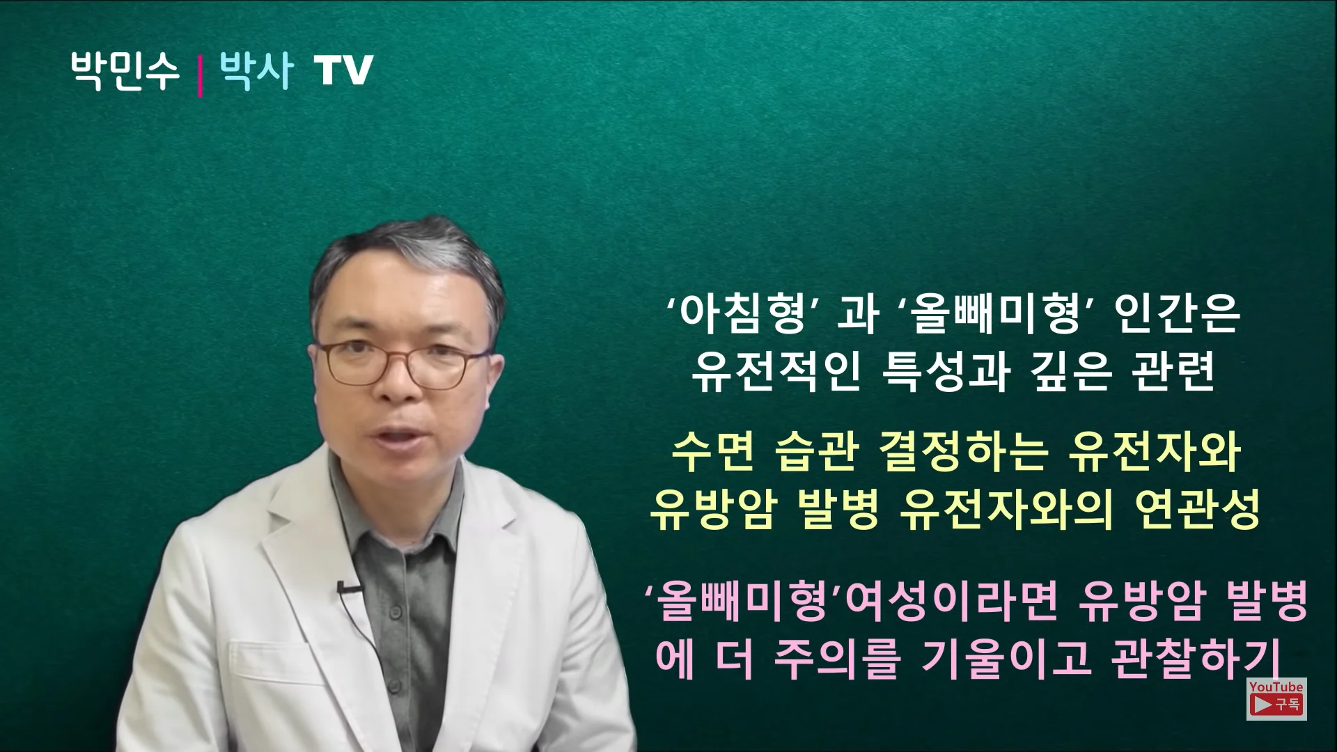 오늘은 서울대학교 의학 박민수 박사와 함께 수면과 암의 관련성에 관해 살펴보고 암을 예방하고 건강하게 살 수 있는 숙면의 조건을 알아보도록 할게요!