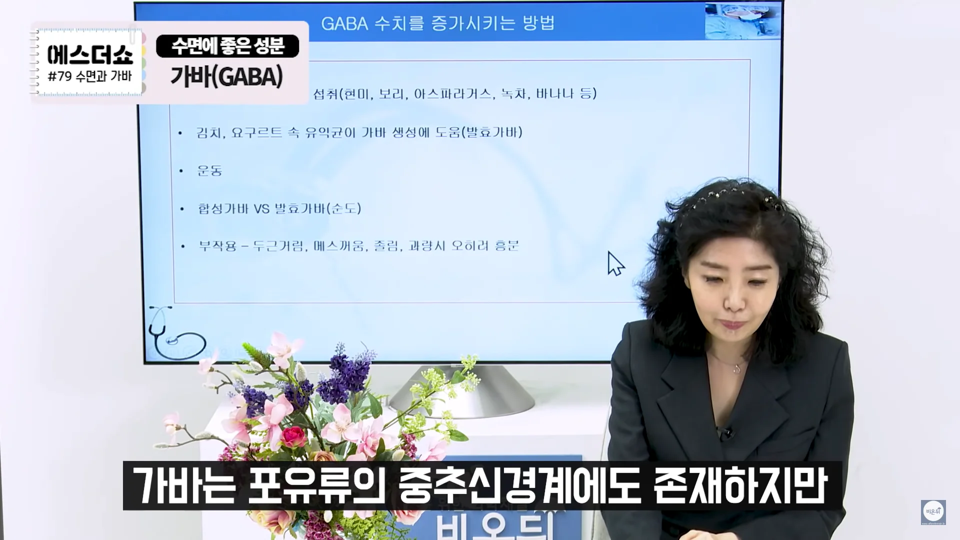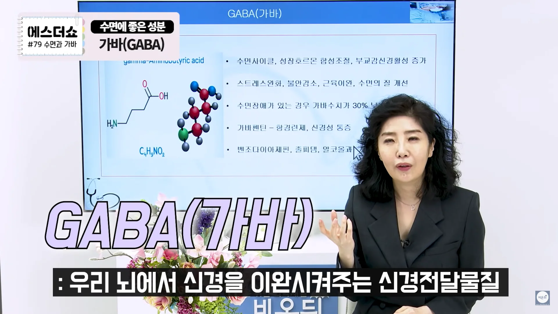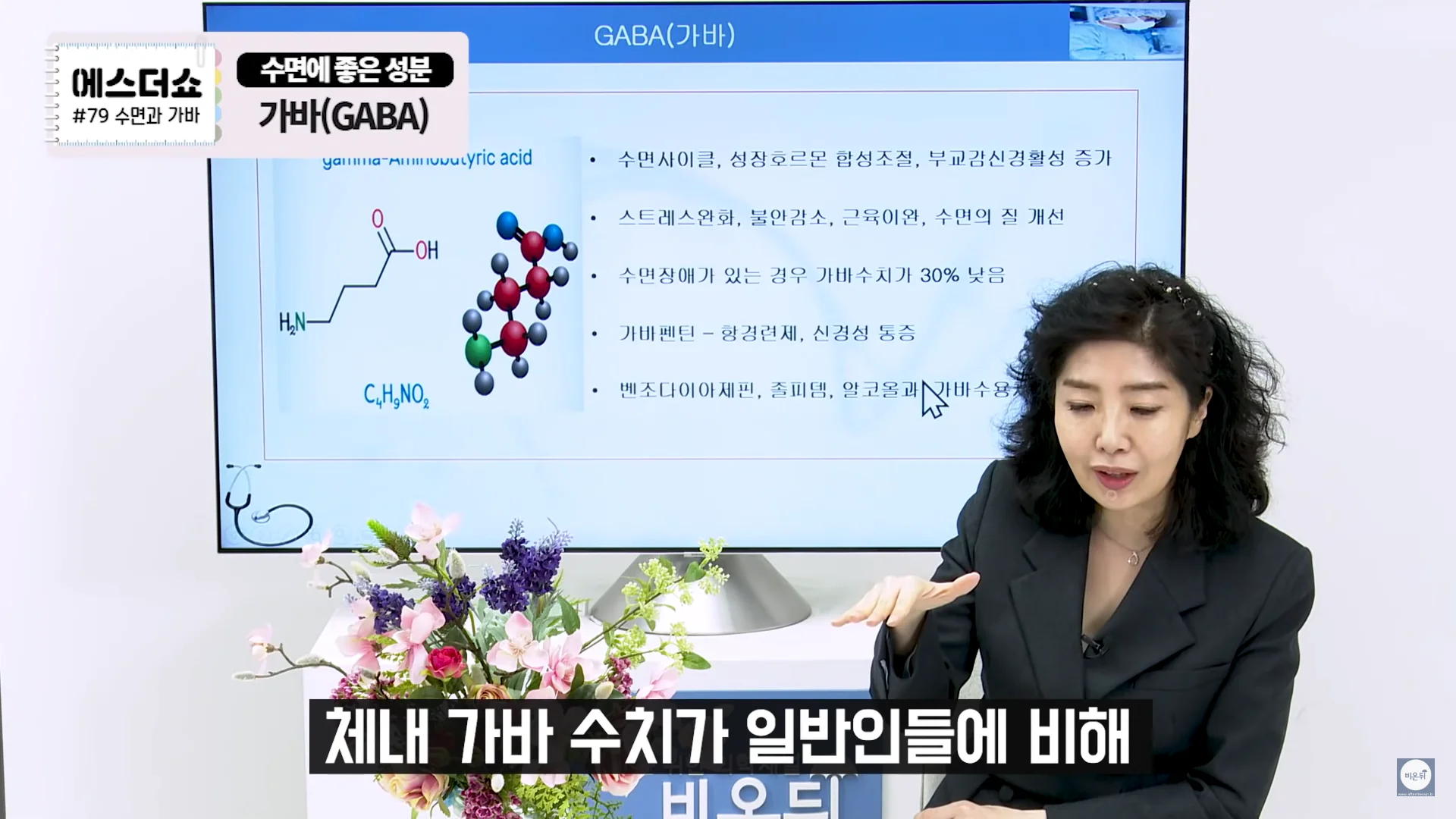 GABA(Gamma-Aminobutric Acid)란 우리 뇌에서 신경을 이완시켜주는 신경전달물질로 불면증이 있으신 분들이나 예민하신 분들은 체내 GABA 수치가 일반인들에 비해 30%정도 낮은 수치가 나옵니다. 때문에 이 GABA수치를 올리는 것이 수면에 좋습니다.