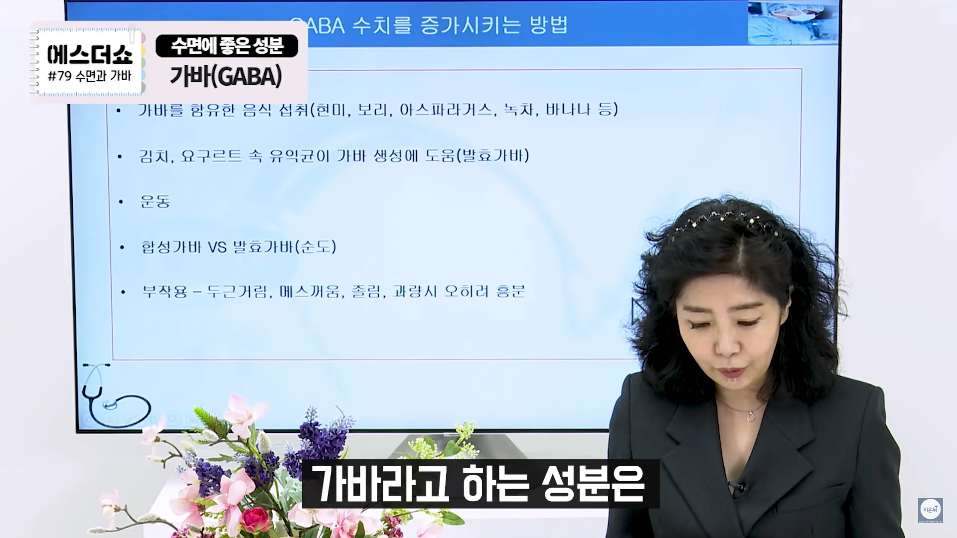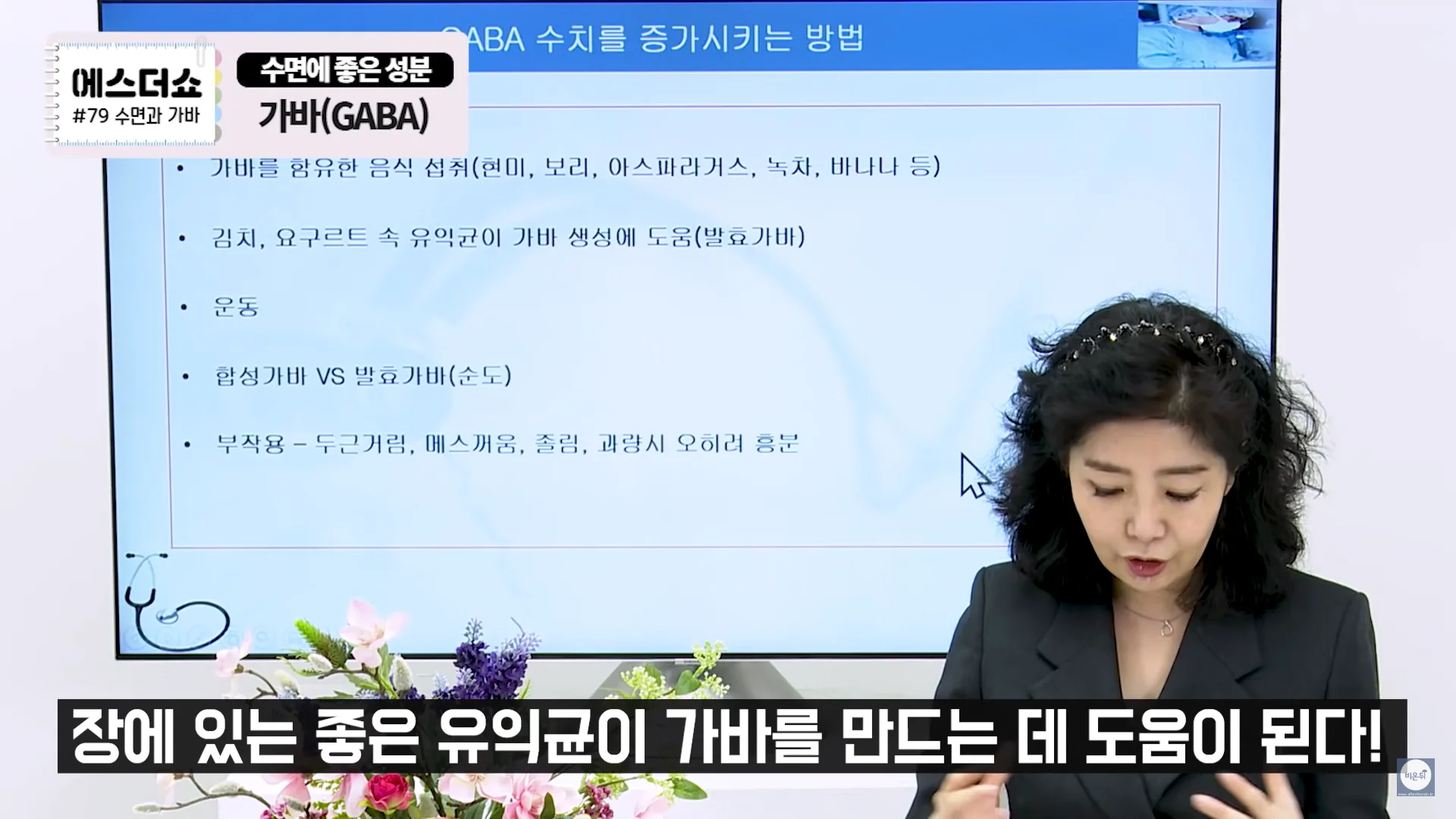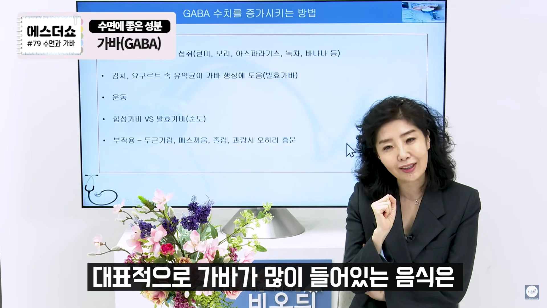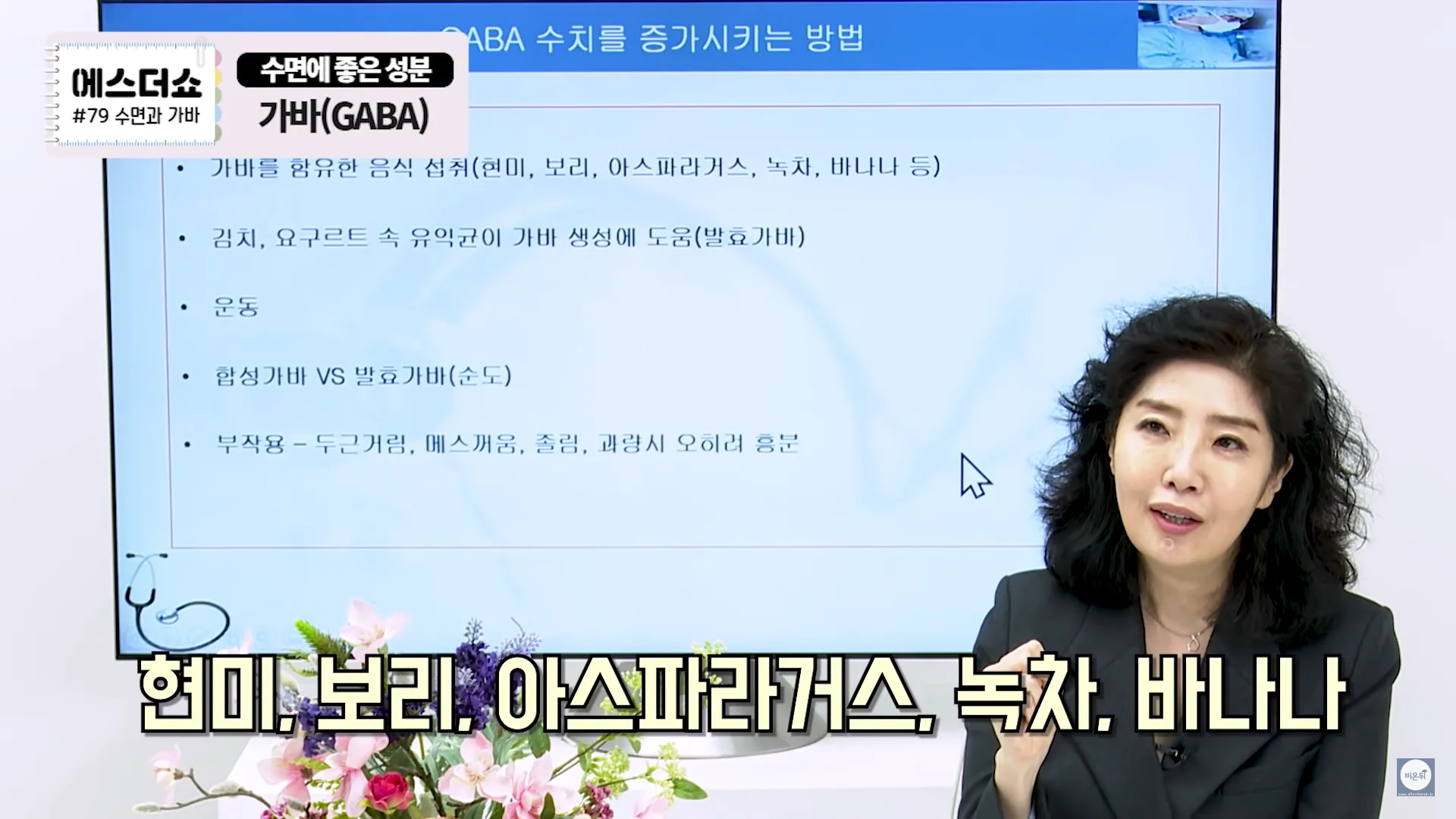 GABA(Gamma-Aminobutric Acid)란 우리 뇌에서 신경을 이완시켜주는 신경전달물질로 불면증이 있으신 분들이나 예민하신 분들은 체내 GABA 수치가 일반인들에 비해 30%정도 낮은 수치가 나옵니다. 때문에 이 GABA수치를 올리는 것이 수면에 좋습니다.