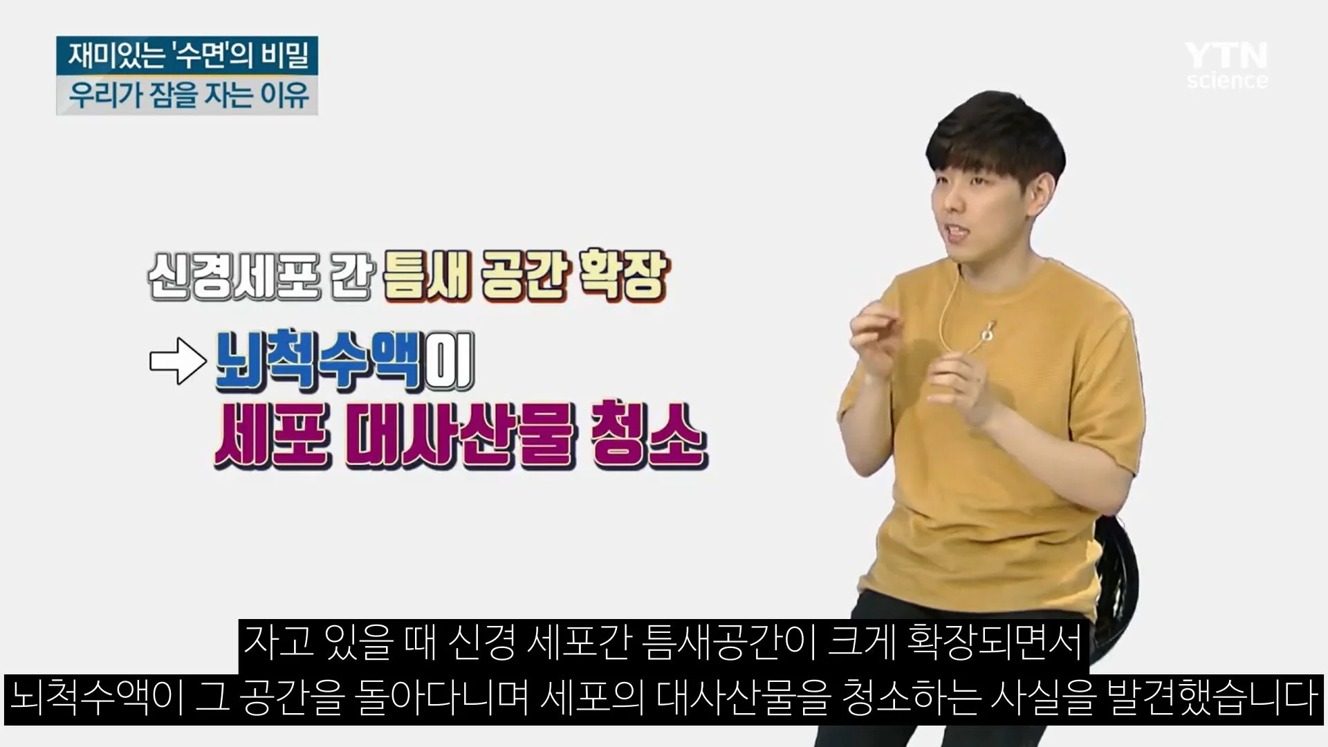 잠을 자는 이유 두 번째는, '잠은 뇌의 독소를 제거하는 과정'이라는 것입니다. 우리의 뇌는 자고 있을 때 신경 세포간 틈새공간이 크게 확장되고 뇌척수액이 그 공간을 돌아다니며 세포의 대사산물을 청소합니다. 그러니까 잠을 잘 때 뇌에서는 배관시스템이 활성화되고 뇌척수액은 세척제 역할을 한다는 것이죠.
