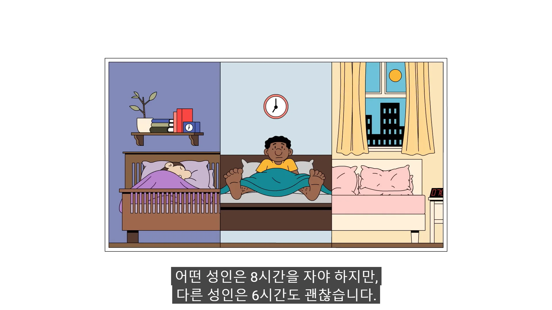 좋은 수면은 사람마다 다를 수 있습니다. 어떤 분들은 8시간 수면이 충분할 수 있고, 어떤 분들은 6시간 수면이 충분할 수 있습니다. 때문에 숫자를 너무 깊이 생각하지 않으셔도 됩니다.