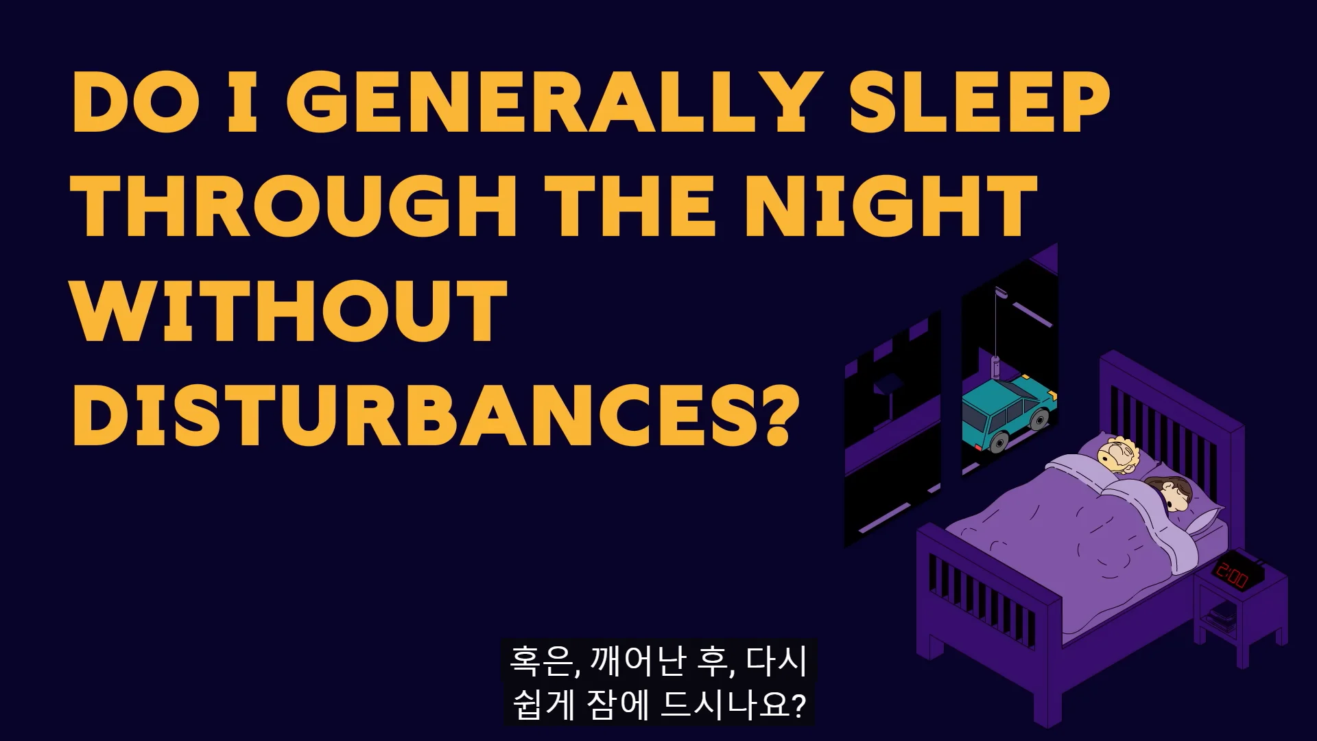 그러니 내가 '낮 시간에 충분한 휴식을 취하고 있는지', '보통 밤에 방해 없이 수면을 잘 취하고 있는지', '깨어난 후 쉽게 다시 잠에 드는지'에 대한 질문을 스스로 던져보고, 이 질문에 대한 대답이 'Yes'라면, 수면에 대해 걱정할 필요가 없습니다.