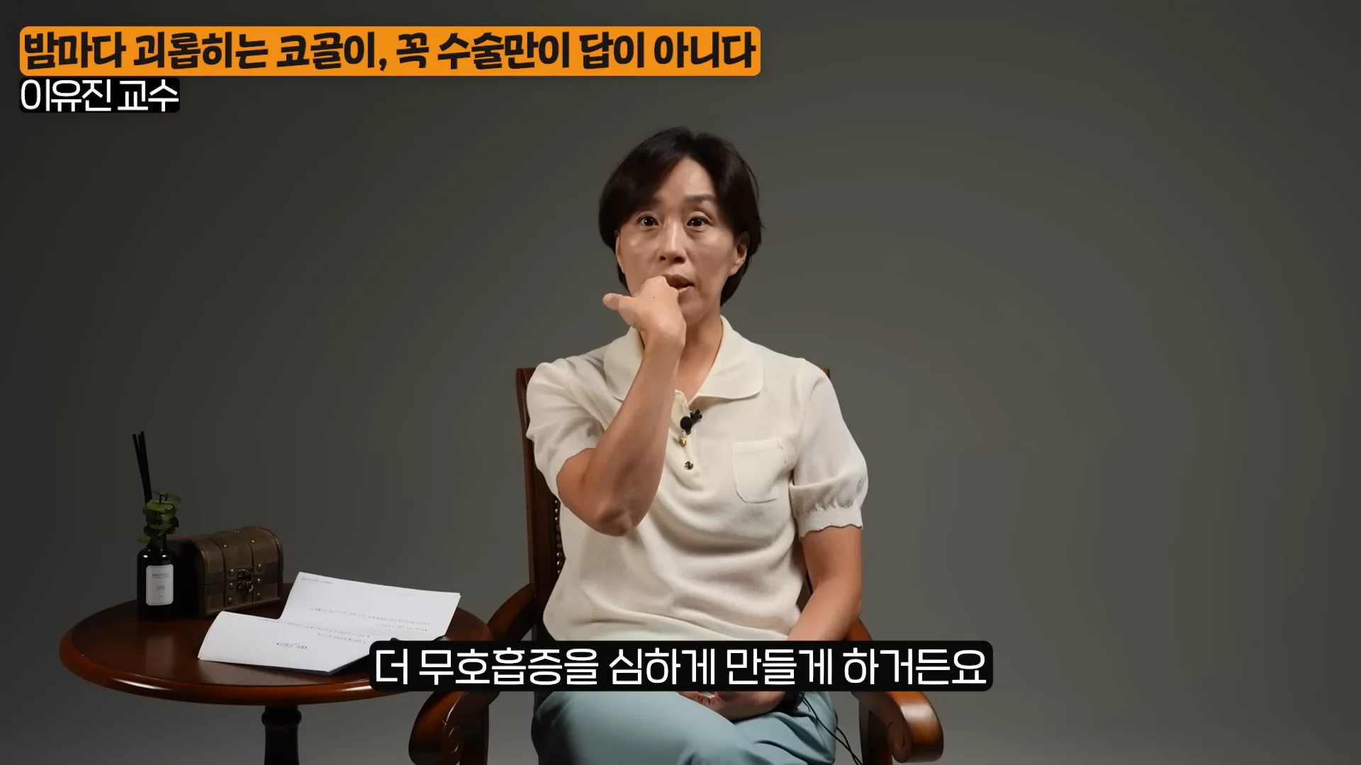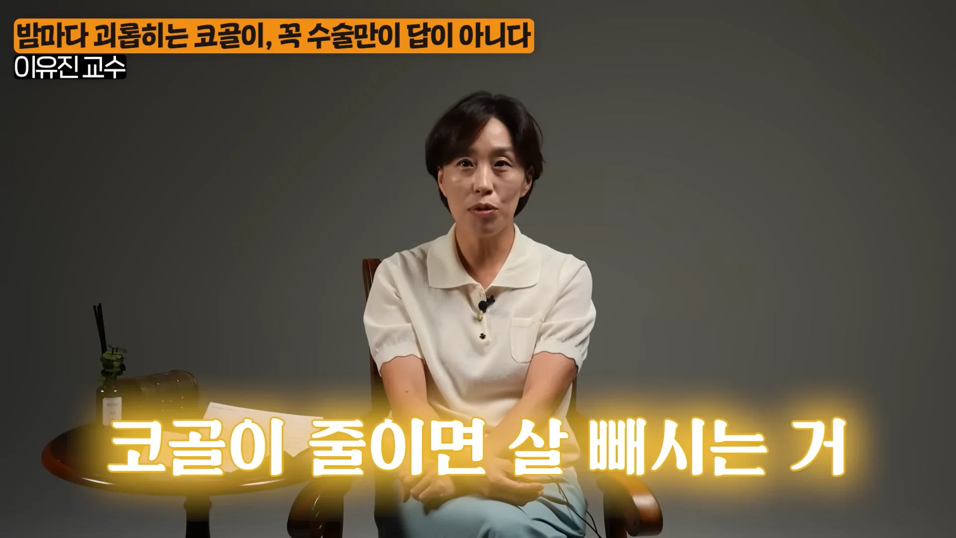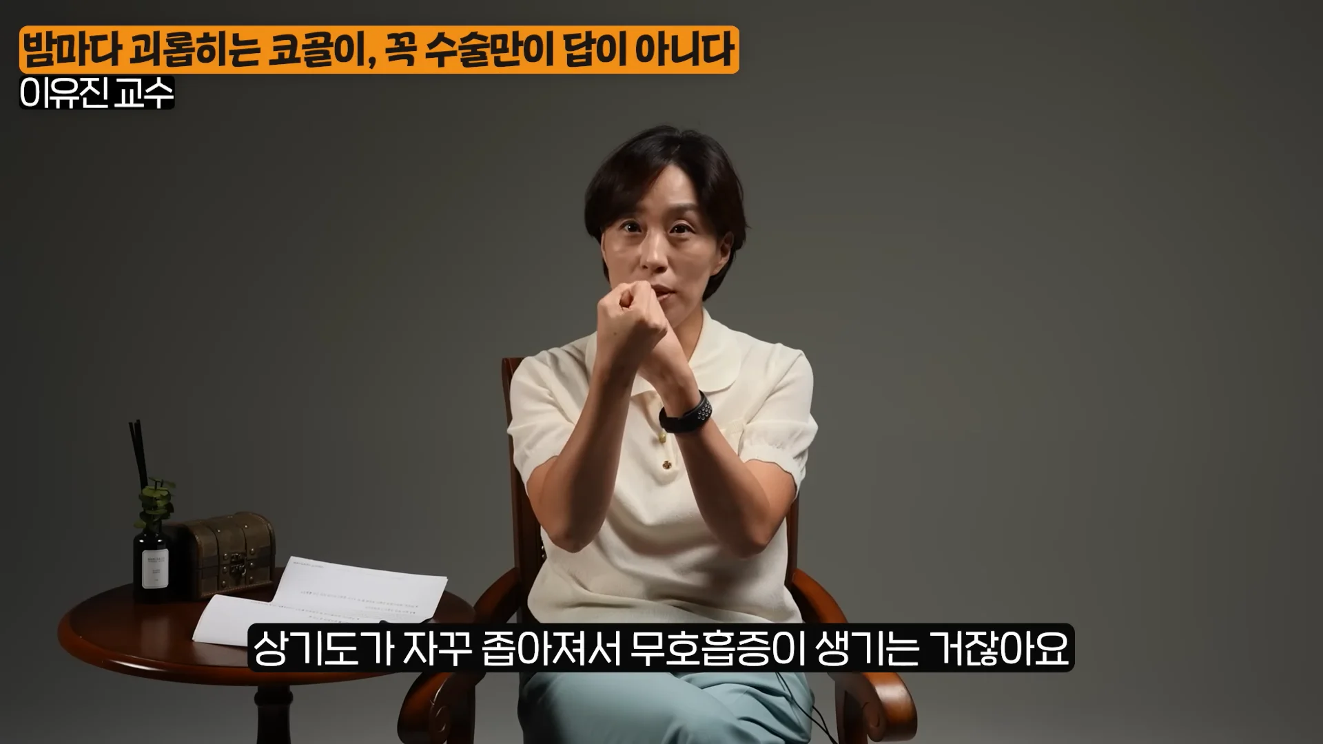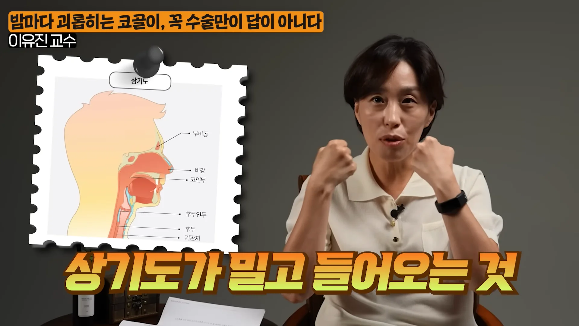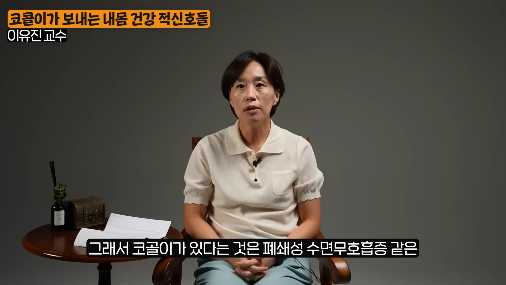 코골이의 원인은 상기도에 다니는 공기의 양이 있는데, 이 길이 좁아져서 나는 소리입니다. 그래서 코골이가 있다는 것은 폐쇄성 수면 무호흡증같은 수면 장애의 증상이 있다는 뜻입니다. 이 코골이는 신체적인 질환들하고 굉장히 연관이 많이되고, 고혈압, 심장질환, 뇌혈관질환같은 질환들을 불러올 확률이 높습니다.