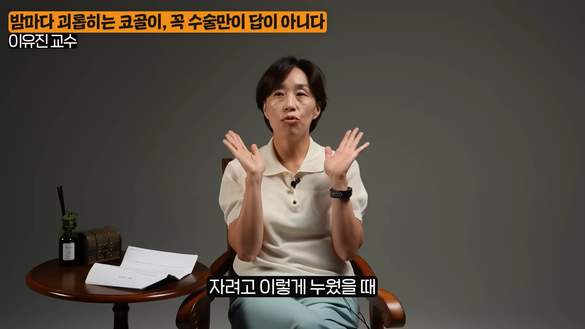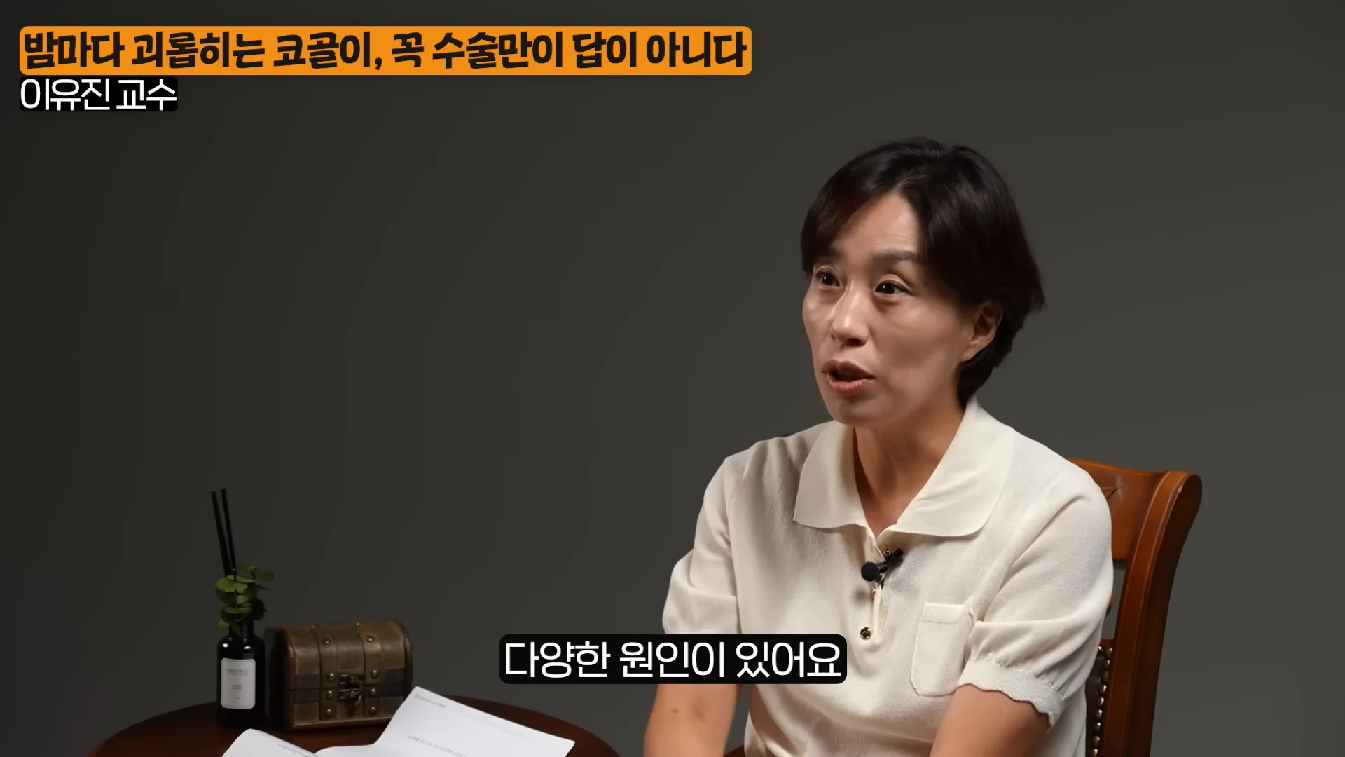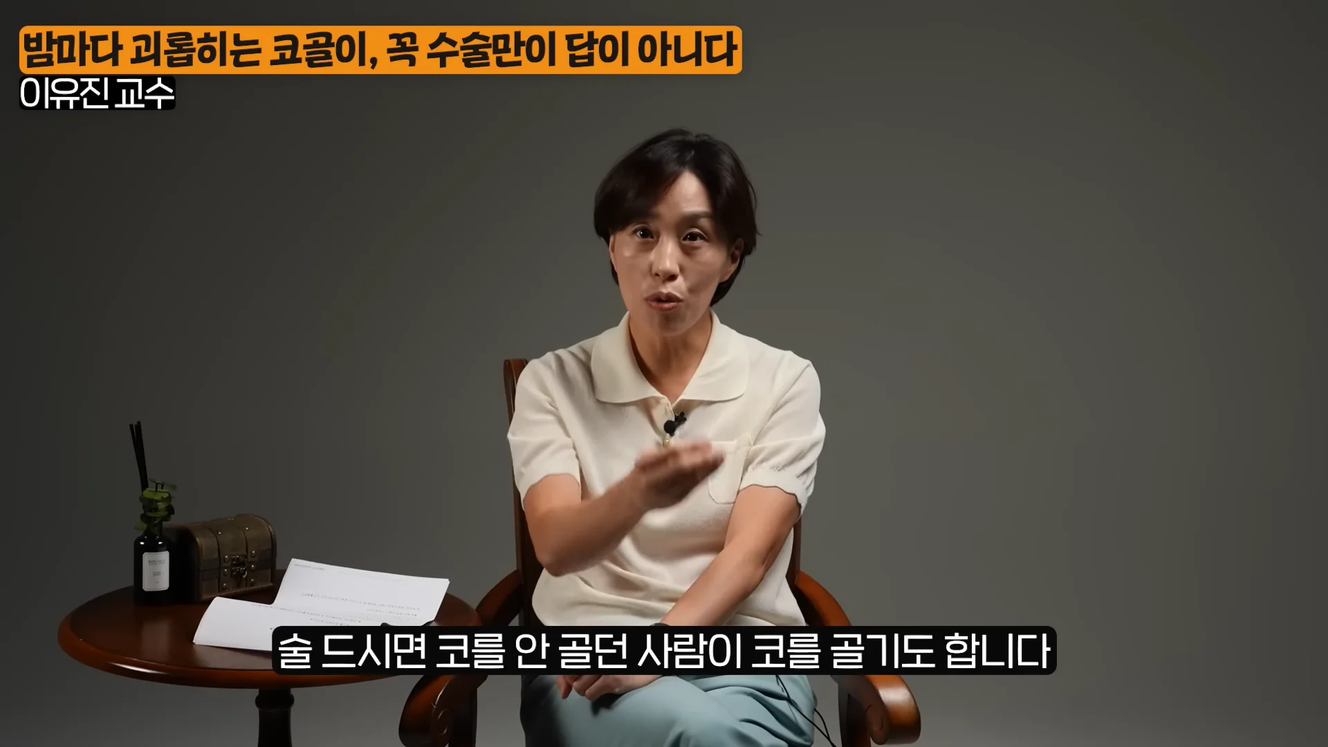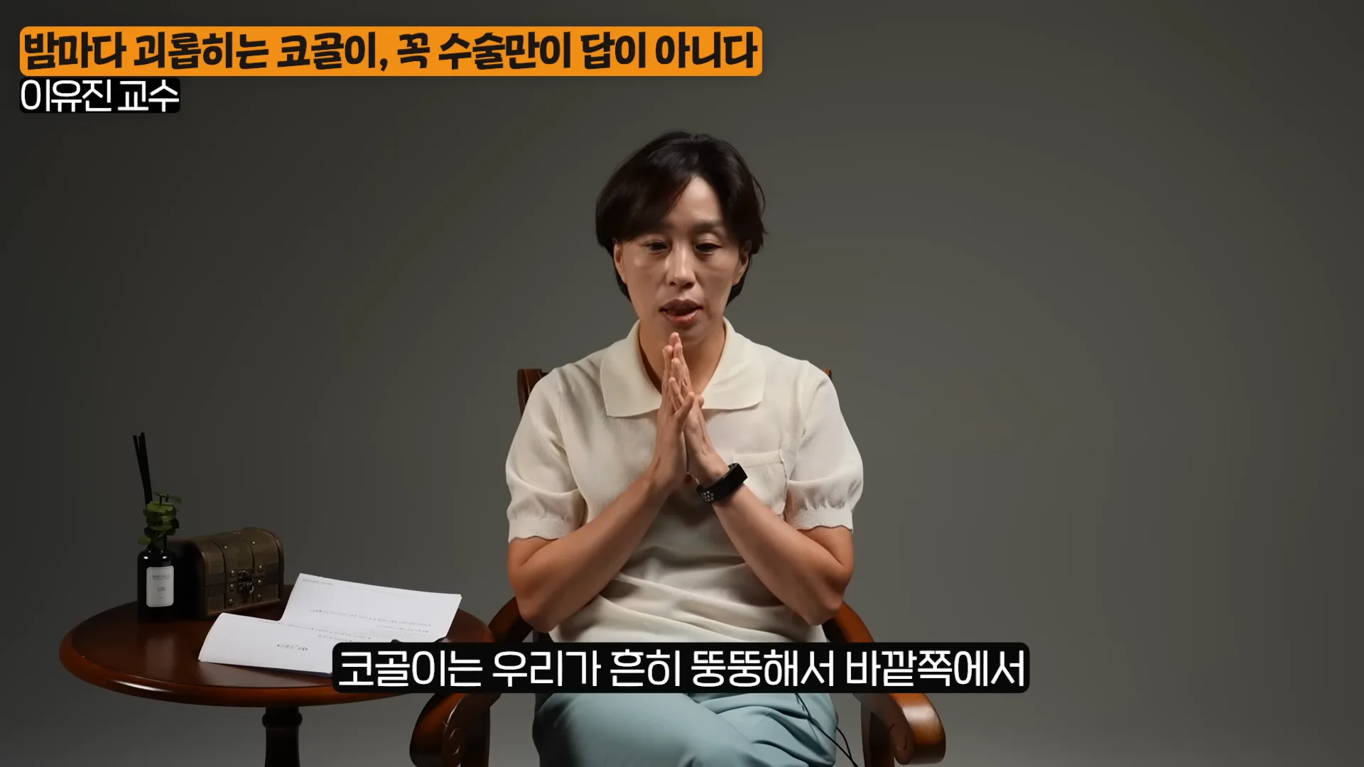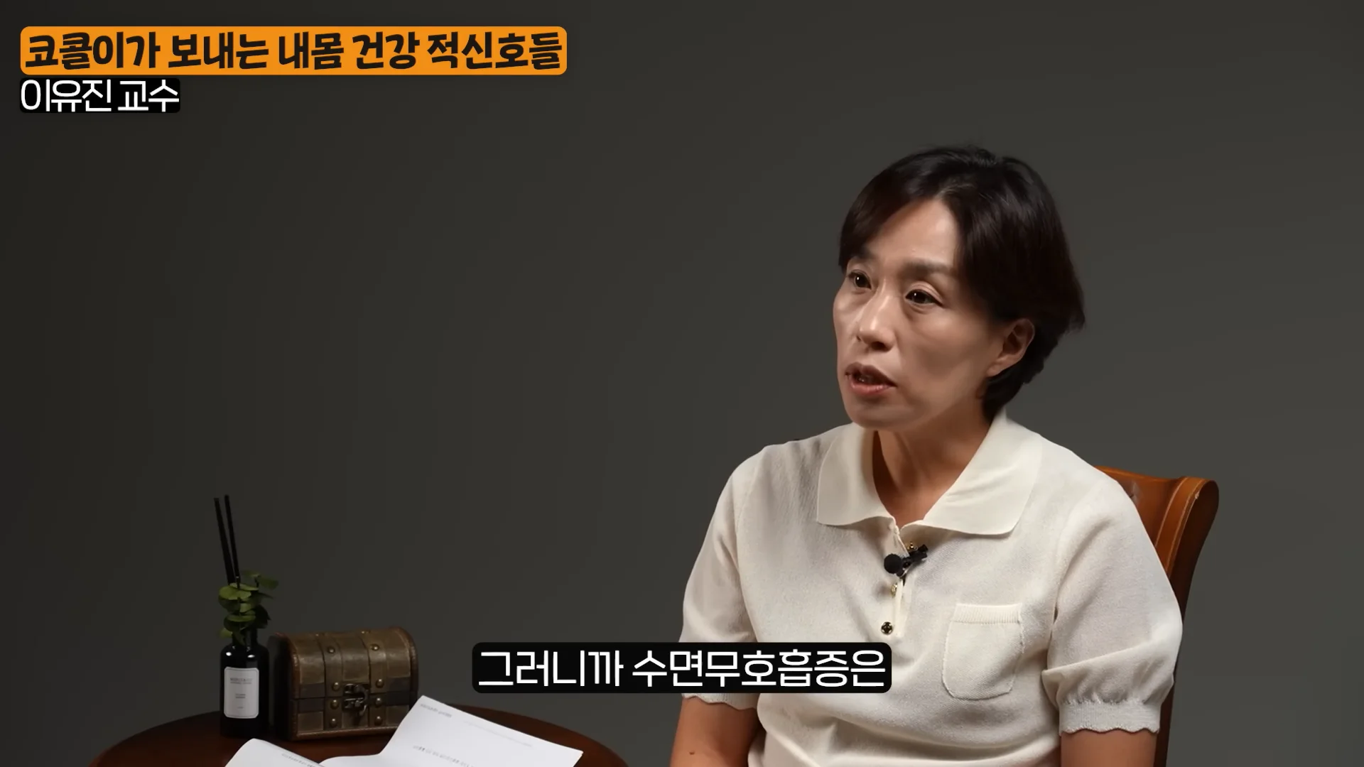 코골이의 원인은 상기도에 다니는 공기의 양이 있는데, 이 길이 좁아져서 나는 소리입니다. 그래서 코골이가 있다는 것은 폐쇄성 수면 무호흡증같은 수면 장애의 증상이 있다는 뜻입니다. 이 코골이는 신체적인 질환들하고 굉장히 연관이 많이되고, 고혈압, 심장질환, 뇌혈관질환같은 질환들을 불러올 확률이 높습니다.